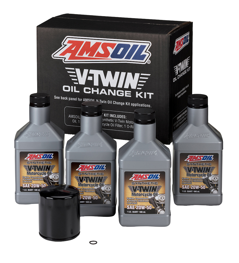 Combines everything needed to perform an AMSOIL oil change on most 1999-2016 Harley-Davidson* motorcycles in one convenient package. Includes four quarts of AMSOIL 20W-50 Synthetic V-Twin Motorcycle Oil, one black AMSOIL Motorcycle Oil Filter and one drain-plug O-Ring.