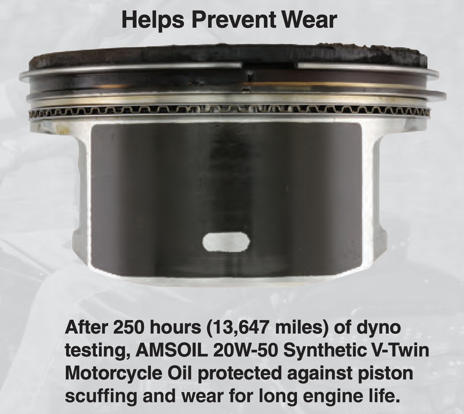 8yrs of Arizona punishmentPro Atv Desert racer been running 20-50 now for the last 8yrs changing the oil after 2 races which average a couple hundred miles each and a few hrs of brutal punishment and harsh Arizona desert summer temps I replace the cylinder and piston at the end of Every season after over a 1000 miles and over a hundred total hrs in a season the piston and cylinder look as if they did when I installed them, the last 8yrs I have not had any engine failures of any sort and it's because of AMSOIL synthetics. I've seen so many guys I race with blow there engines time and time again during the season and they continue using their own preferences of oils and still have issues. I have so much confidence in AMSOIL when going racing that engine failures don't even cross my mind.........thank you AMSOIL for your continued sponsorship support and your hard work put in by your R&D department.......It's paying off....."!!!!! Item Reviewed: 20W-50 Synthetic V-Twin Motorcycle Oil (MCV)