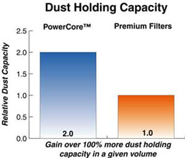 The rugged structure and fluted media construction of these PowerCore filters provide increased contaminant holding capacity, more efficiency and eliminate media movement.
